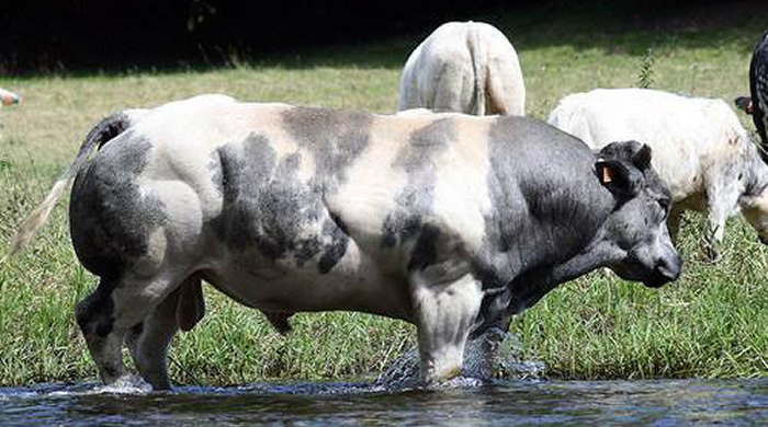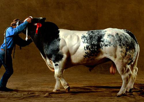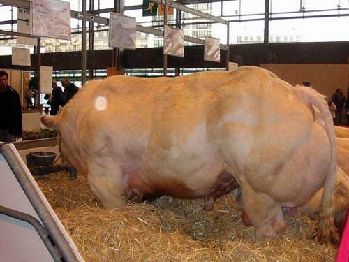 Quem gosta de um bom churrasco deve olhar para esse tipo de gado e imaginar que grande assado daria um animal desse.A raça Belgian Blue é originaria da Bélgica central é o cruzamento do gado nativo com a raça Shorthorm importada da Inglaterra de 1950 á 1890, o animal com esses músculos avantajados tem uma carne com novos padrões de carne magra e muito comercial e podem atingir ate uma tonelada de peso.
