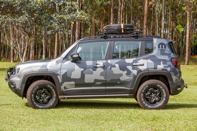 O Jeep Renegade Mopar ainda recebeu uma série de alterações mais radicais: envelopamento completo da carroceria com tema inspirado em camuflagem (película da AveryDennison), suspensão elevada em 1,5 cm, bulbar de aço, guincho elétrico para 12.000 libras, barra de luz auxiliar de 30 cm com 42 LEDs, snorkel OGZ e pneus do tipo all-terrain.