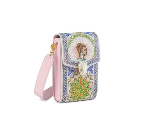 Inspiradas nos fascinantes mosaicos que pavimentam muitas das vilas e marcos mais fascinantes da Cidade Eterna, três criações adicionais apresentam uma estampa vibrante e ousada, fundindo um neoclassicismo contemporâneo com a sensação de férias de marca registrada de Casablanca. Impulsionando a beleza eterna de Roma para a modernidade, o padrão vivaz é impresso em uma textura elevada na parte superior do corpo de couro de bezerro, para transmitir autenticamente a textura tridimensional dos mosaicos.