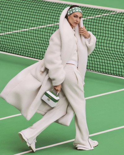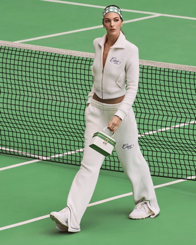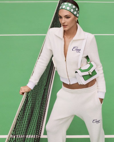 Dividida em dois lançamentos, a coleção de 7 peças conduz através dos principais mundos de inspiração da Casablanca: o esporte com o Après Tennis Story e o patrimônio artístico com o Mosaic Story. Inspirado nos estilos clássicos de tênis e elementos de design gráfico, para a primeira história, Casablanca eleva o visual do après sport jogando sobre o contraste icônico entre um fundo branco e toques de verde. A mistura única de couro perfurado branco, ferragens douradas e alças de madeira inéditas refere-se imediatamente ao equipamento, ao clima, às cores, aos detalhes, ao visual e à estética elegante do mundo do tênis.
