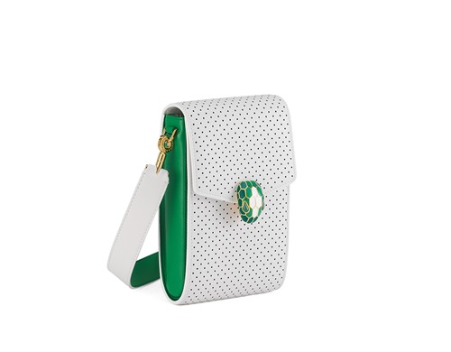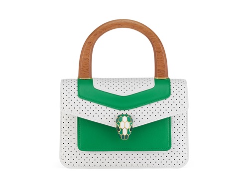 As cores vivas e o design evocativo trazem um toque de extravagância à bolsa Serpenti Forever com alça de madeira removível e alça de couro, a arrojada bolsa Tote com decoração policromada do logotipo Bulgari e a nova bolsa Serpenti Crossbody, com sua estrutura plana e compacta encimada pelo icônico fechamento de cabeça de cobra.