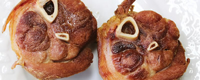 Dessalgar o joelho. Colocar numa panela de pressão com 2 e ½ litros de água e juntar o louro, o alecrim, o coentro e a canela. Cozinhar durante 1 hora, aproximadamente. Misturar bem a água restante com o mel, o bacon, o vinho e a mostarda. Passar o joelho cozido nesse molho e levar ao forno. Assar em forno médio por 15 minutos, regando sempre com o molho. Retire. Colocar bastante óleo numa panela funda e deixar aquecer bem. Mergulhe o joelho e fritar até ficar pururuca. Retirar e servir.