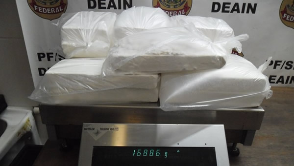 Policiais federais foram acionados na sexta-feira (17) por funcionários que operam o aparelho de raio-x. Eles detiveram um suspeito em voo com destino a Joanesburgo, na África do Sul. O homem, um venezuelano, de 34 anos, foi conduzido à sede policial para que, na presença de testemunhas, seus pertences fossem periciados. Os peritos federais encontraram quase 17 kg de cocaína na forma de tabletes, envoltos em lençóis.